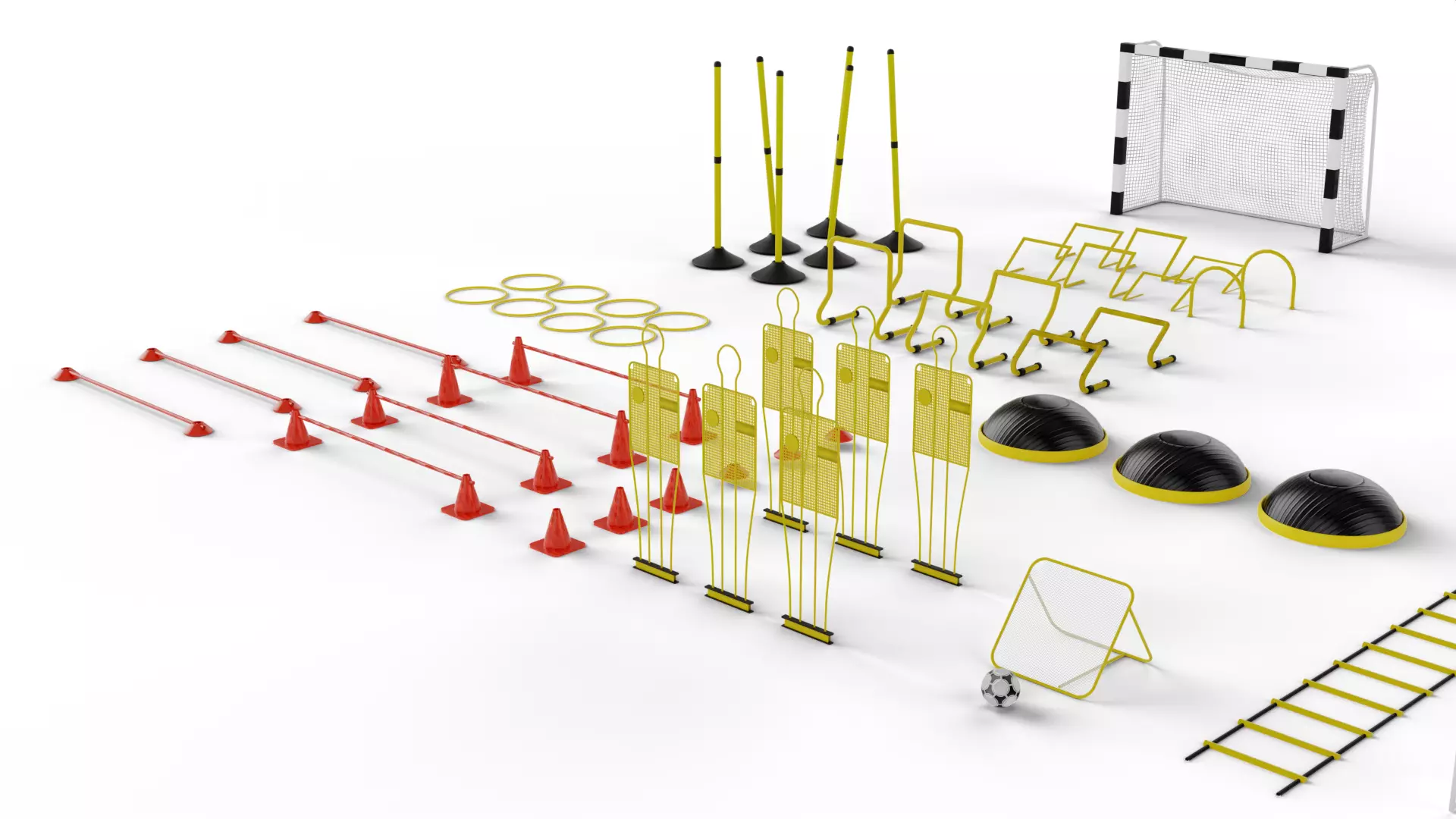 A high-quality Football Training Equipment Pack featuring a complete set of professional soccer training assets. This collection includes a wide variety of training tools commonly used in football drills, practice sessions, and coaching environments.