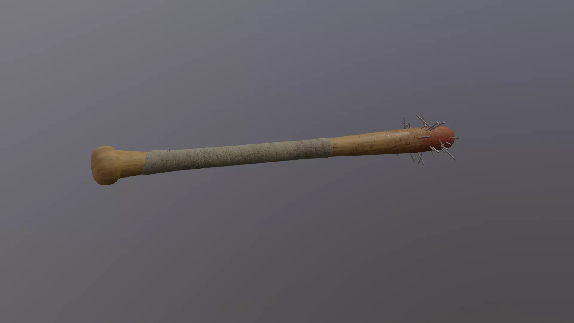 • Game-ready spiked baseball bat 3D model featuring a worn wooden bat reinforced with embedded metal nails and spikes. The asset has a gritty, violent aesthetic suitable for horror, survival, post-apocalyptic, or action-themed projects.