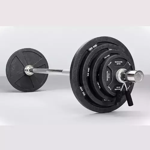 Weightlifting bar with Weights (20kg, 15kg, 10kg, 5kg) and a trusty clamp. All objects are textured, UV unwrapped, and baked. The baked textures are in the .rar file. Model is lowpoly and game ready.