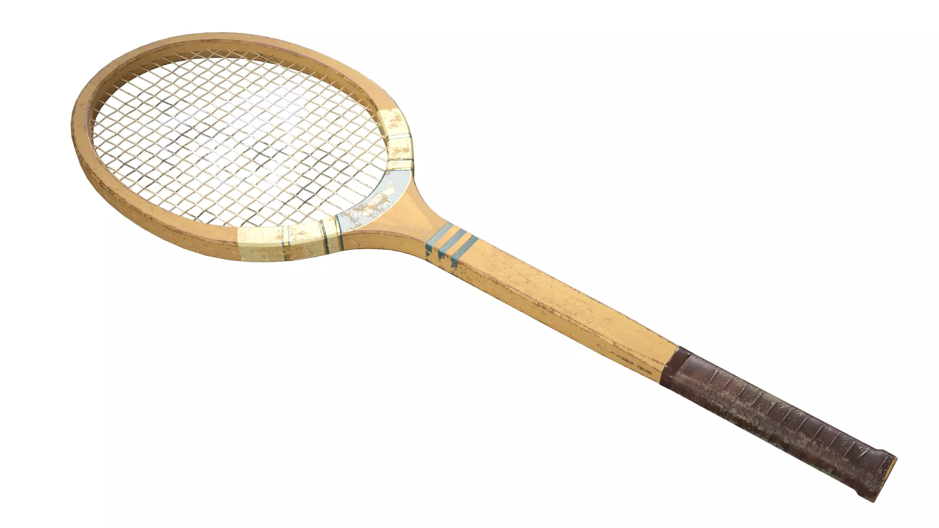 A 3D model of a Old and Worn Dunlop Tennis Racket. PBR Metal-rough workflow used. All maps/texture are included.