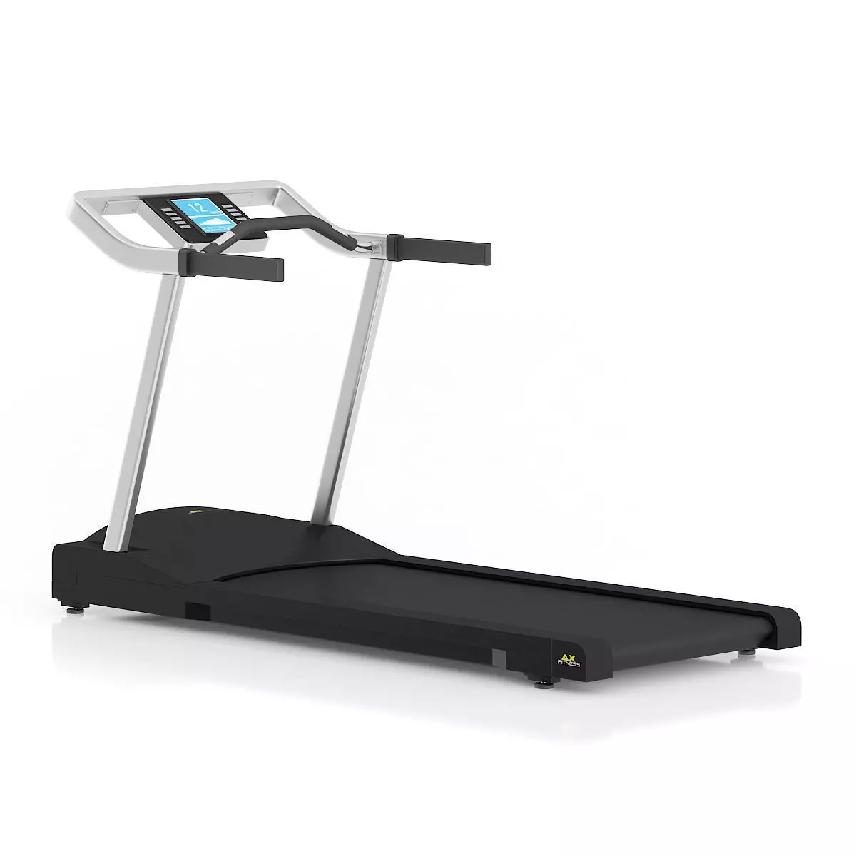3d model of black and silver treadmill with computer.