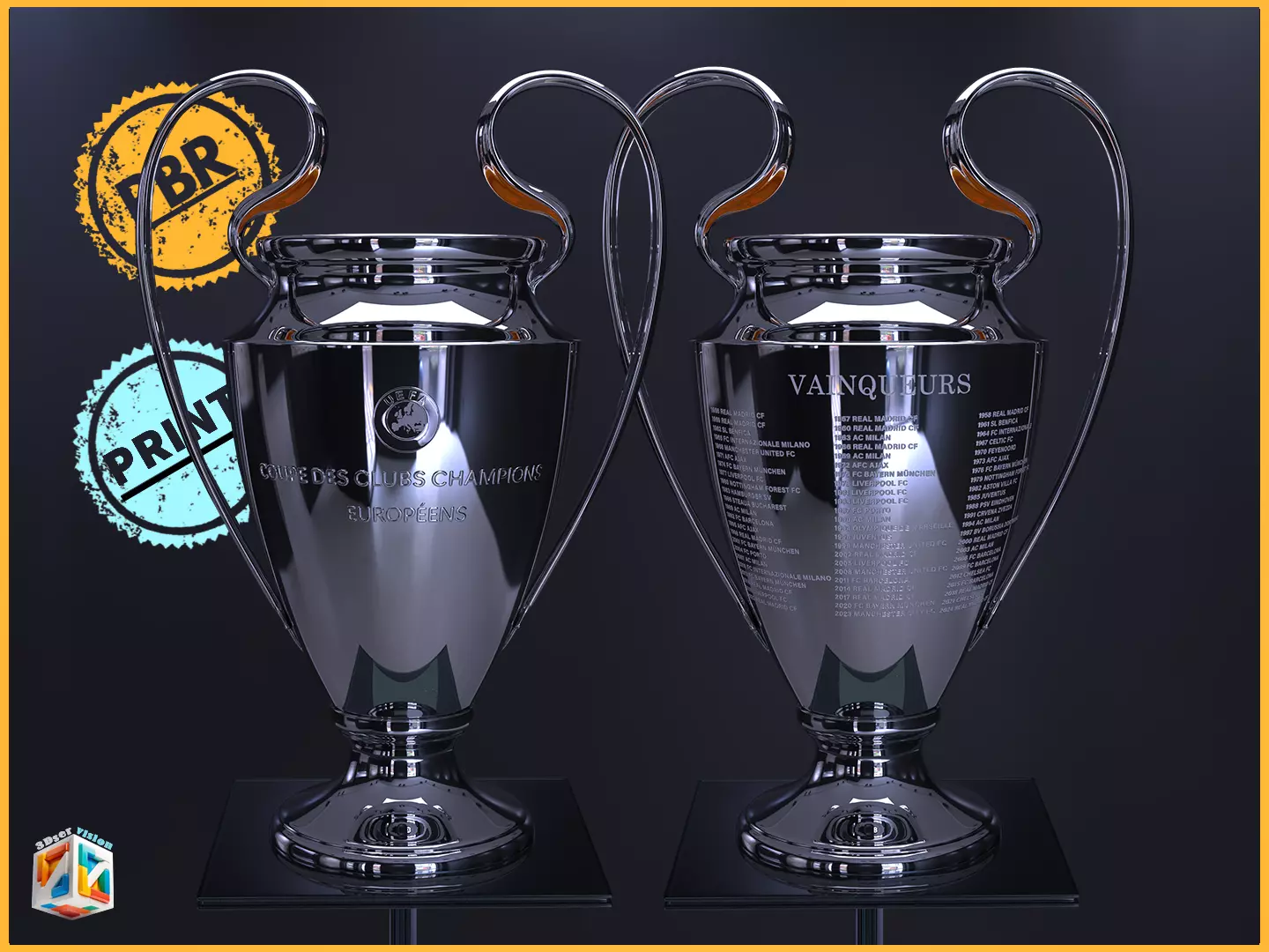 Celebrate Europe’s most prestigious football award competition with this hyper-realistic UEFA Champions League Trophy 3D Model. This latest version includes TWO STL-ready designs for 3D printing: