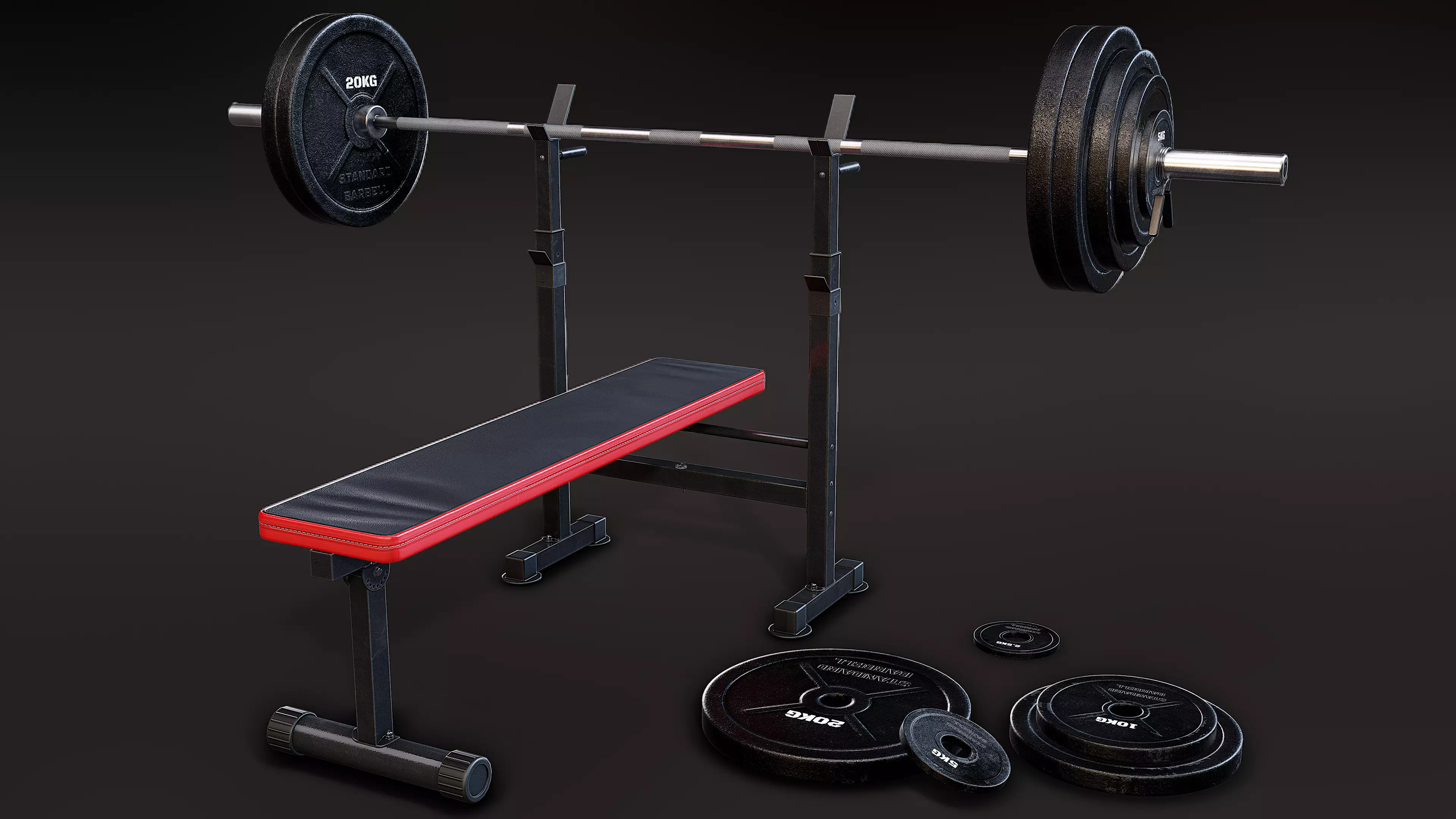 One set of 2k textures for the Bench One set of 2k textures for the Barbell and Spring Collar One set of 2k textures for each weight