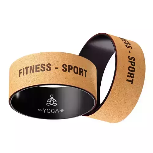 3d model of a yoga wheel. Plastic base covered with cork wood, with logos. The model is made for anti-aliasing.