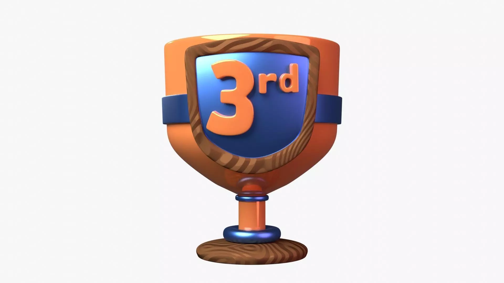 This 3D illustration of a 3rd Trophy is designed to not only celebrate the physical attributes of the award but also to evoke the emotions associated with achieving a significant milestone. The combination of meticulous details, thoughtful design, and realistic rendering creates a visually compelling representation of this symbolic recognition.