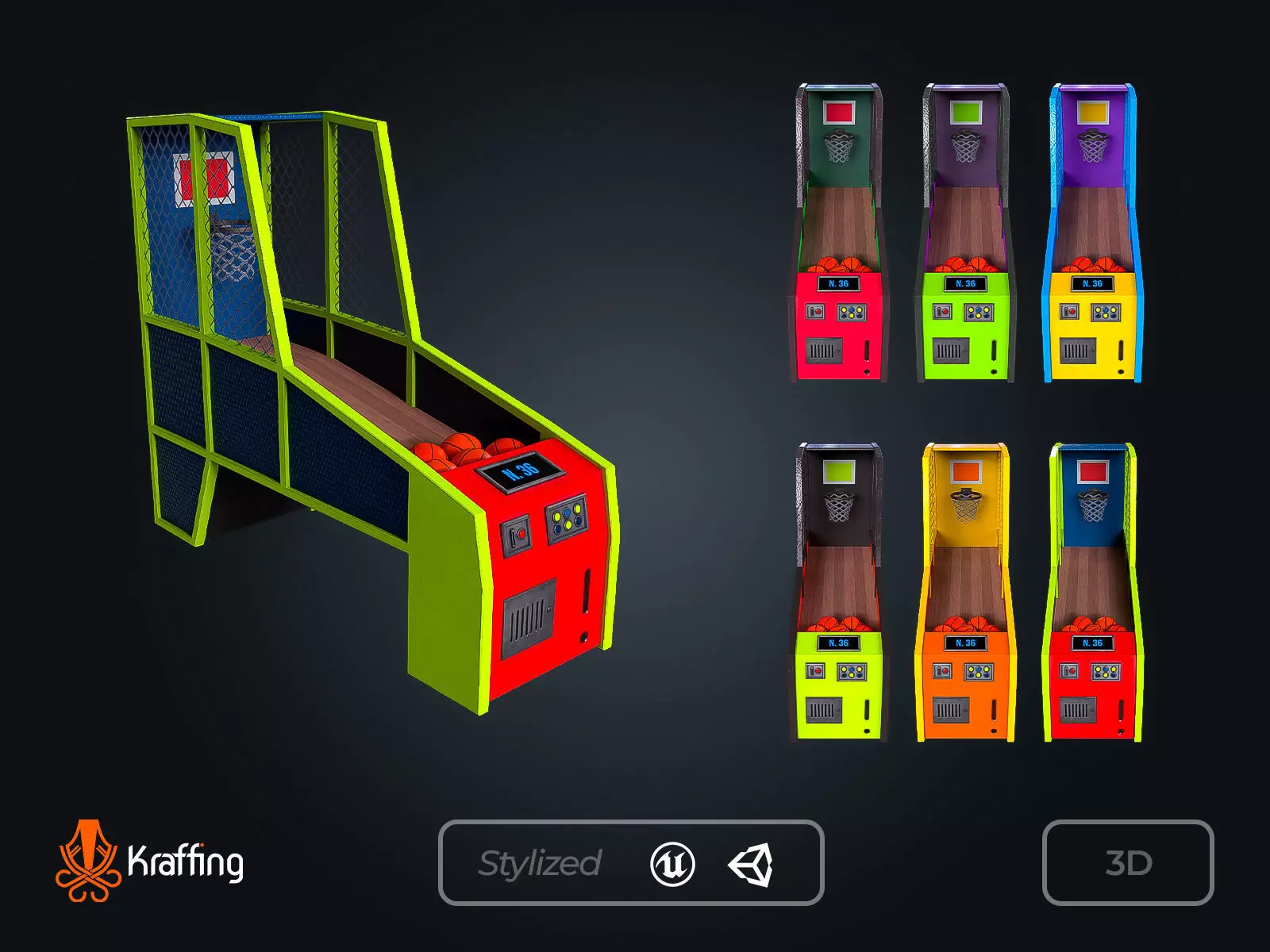 Kraffing presents a 3D modeling Arcade Hoops V1. Recreated design so you can use it in personal projects, scenes, videogames and more.
