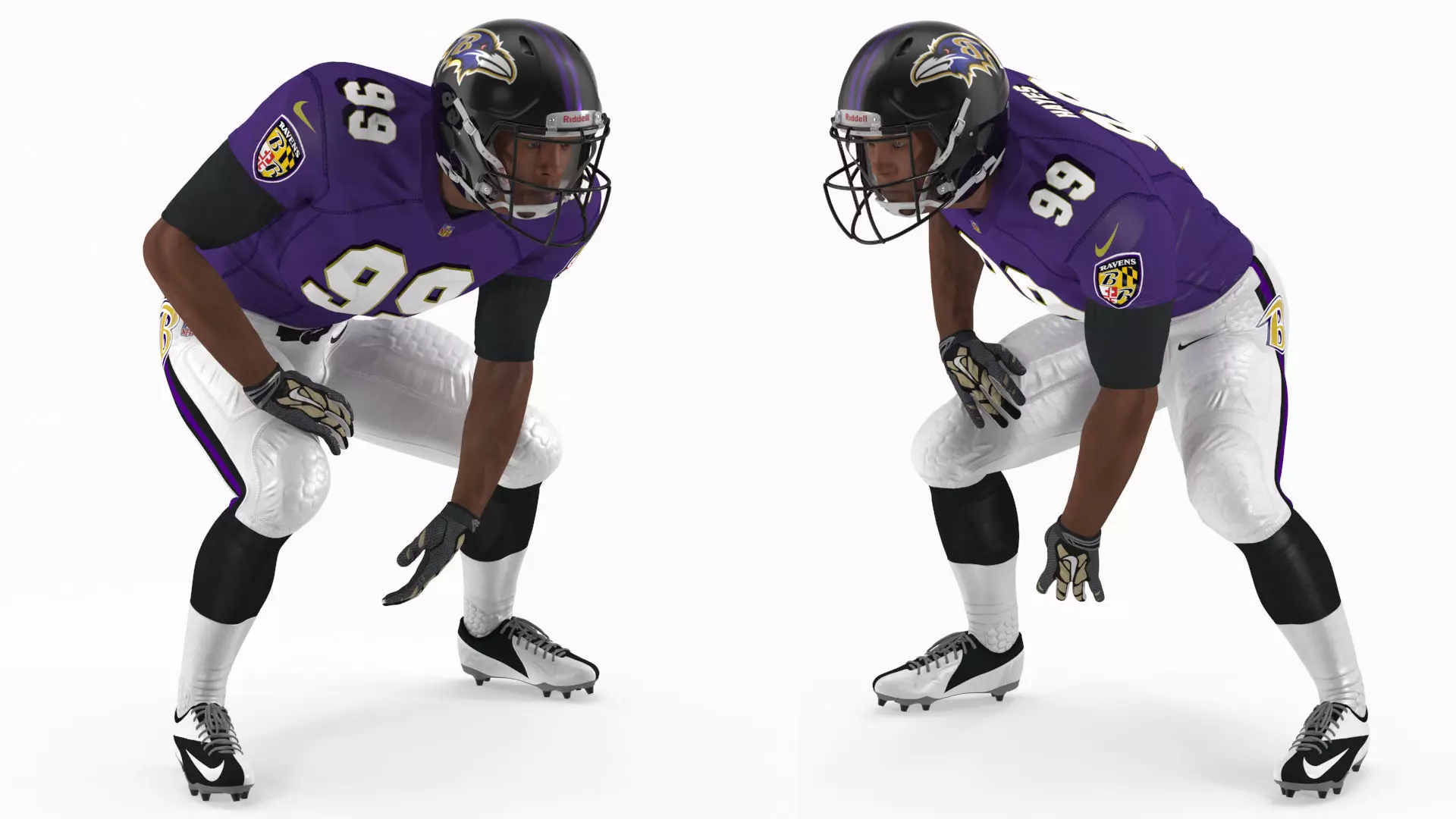 Baltimore Ravens American Football Player Crouching Fur is a three-dimensional model of an Black brave athletic person.