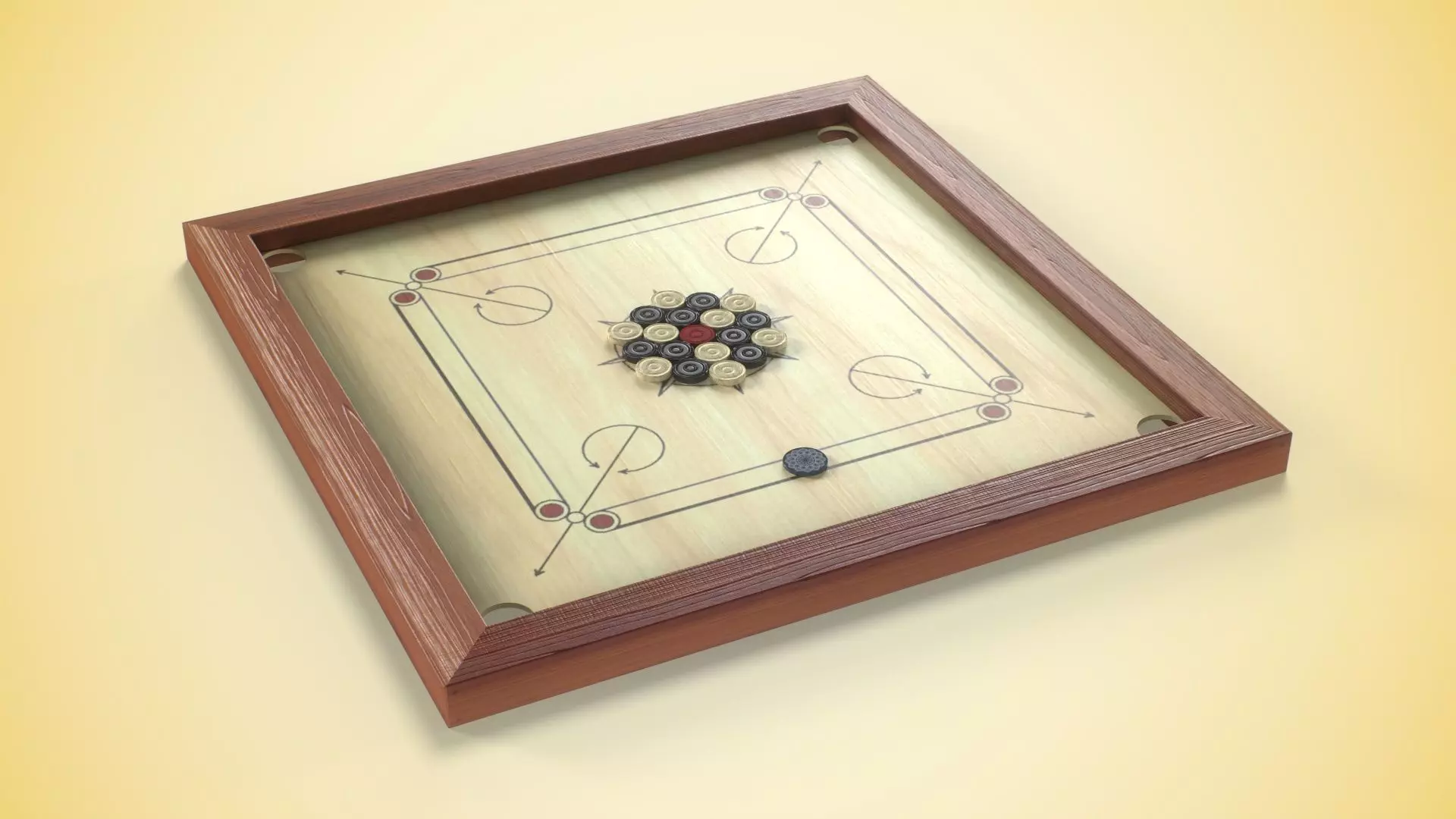 This is a 3d model of a Carrom Board. This model is ideal for interior visualizations, games, and movies. All textures are available in zip format. Created with Cinema 4D. Textured in substance painter, Rendered with Marmoset Toolbag 4. All objects UV unwrapped.