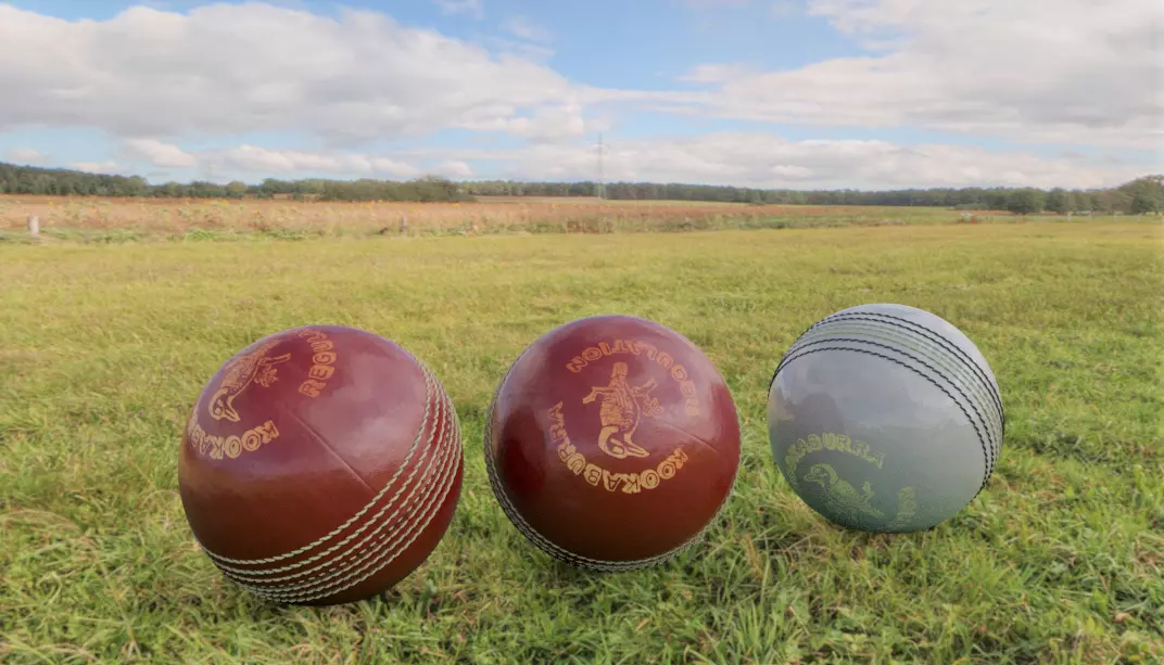 A detailed model of red and white Kookabura cork cricket balls modeled in Blender. Single Mesh object