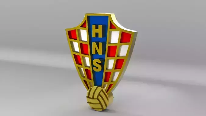 Croatia National Soccer Team Logo, modeled and rendered in Maya using Redshift, PBR Textures included (BaseColor, Metallic, Roughness and Normal Maps).