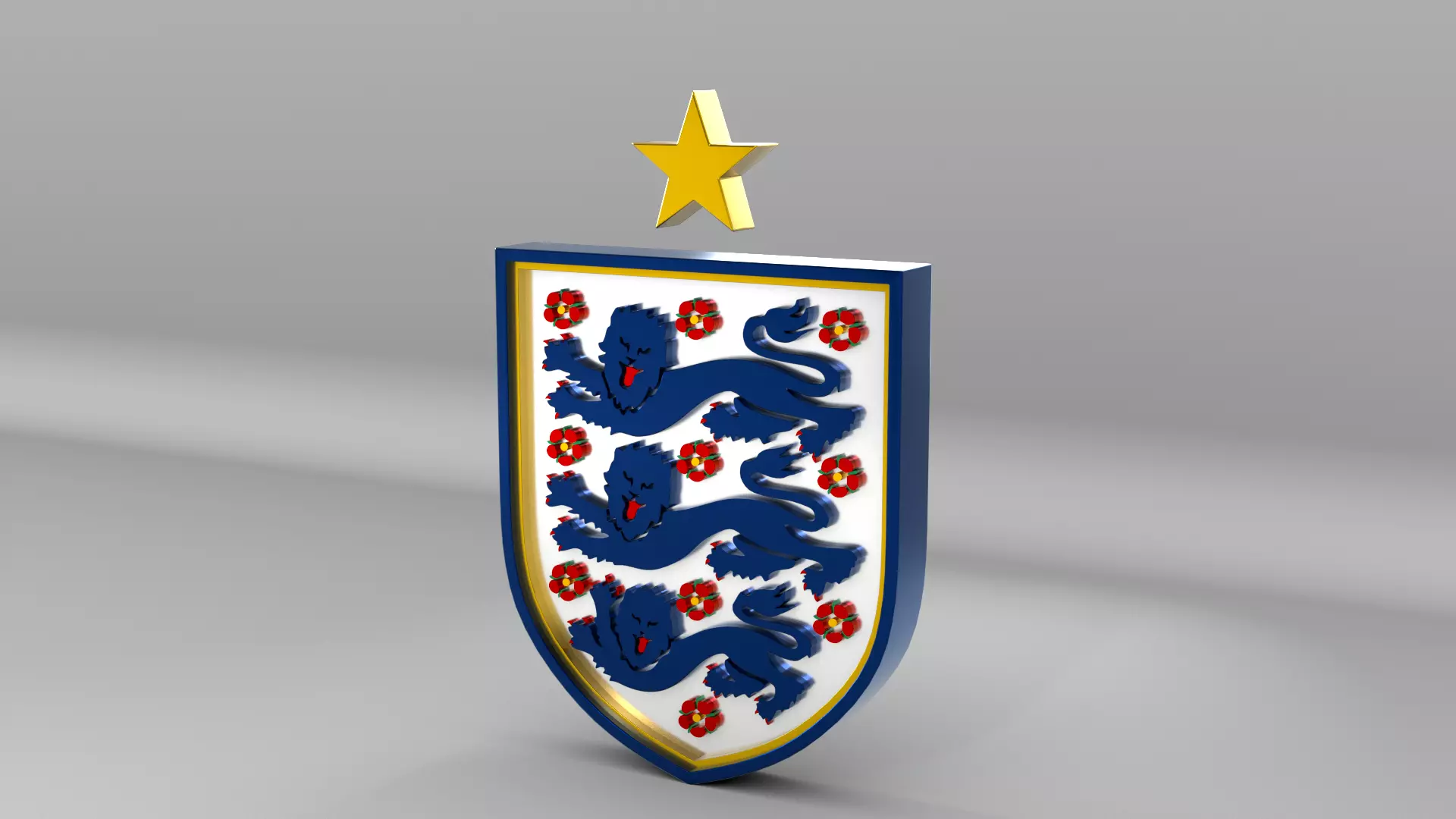 England National Soccer Team Logo, modeled and rendered in Maya using Redshift, PBR Textures included (BaseColor, Metallic, Roughness and Normal Maps).