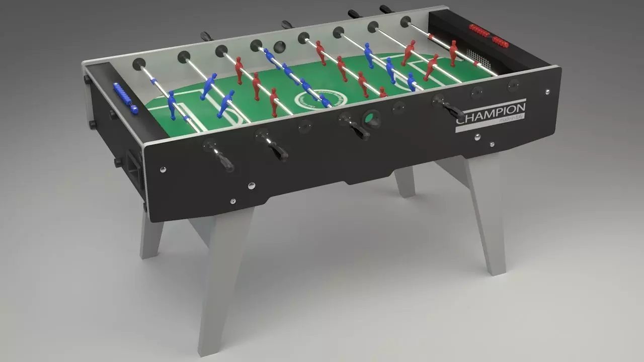 A 3D Model of a FoosBall Tabletop footbal table. Modeled from the Garlando Champion Folding Leg Football Table. PBR Metal-rough workflow used. All maps/texture are included.