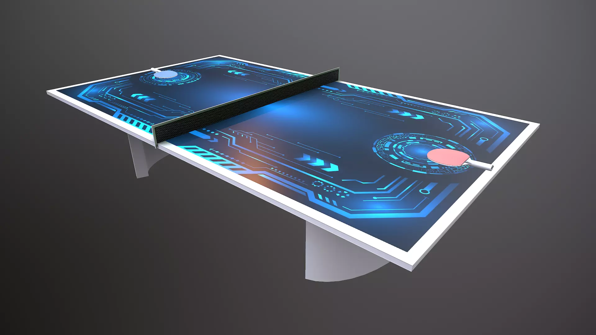 Professionnally made futuristic Ping Pong table for game with rackets.