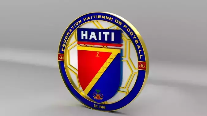 Haiti National Soccer Team Logo, modeled and rendered in Maya using Redshift, PBR Textures included (BaseColor, Metallic, Roughness and Normal Maps).