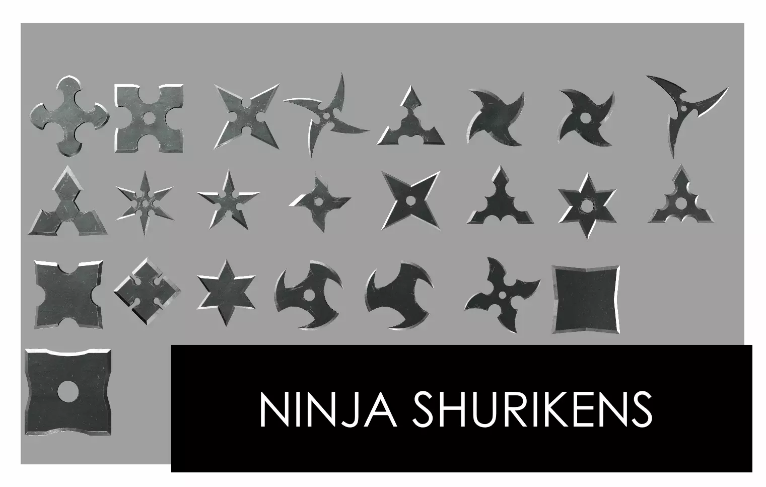 A set of game ready 24 Shurikens in Lowpoly and PBR textures with 3 variations