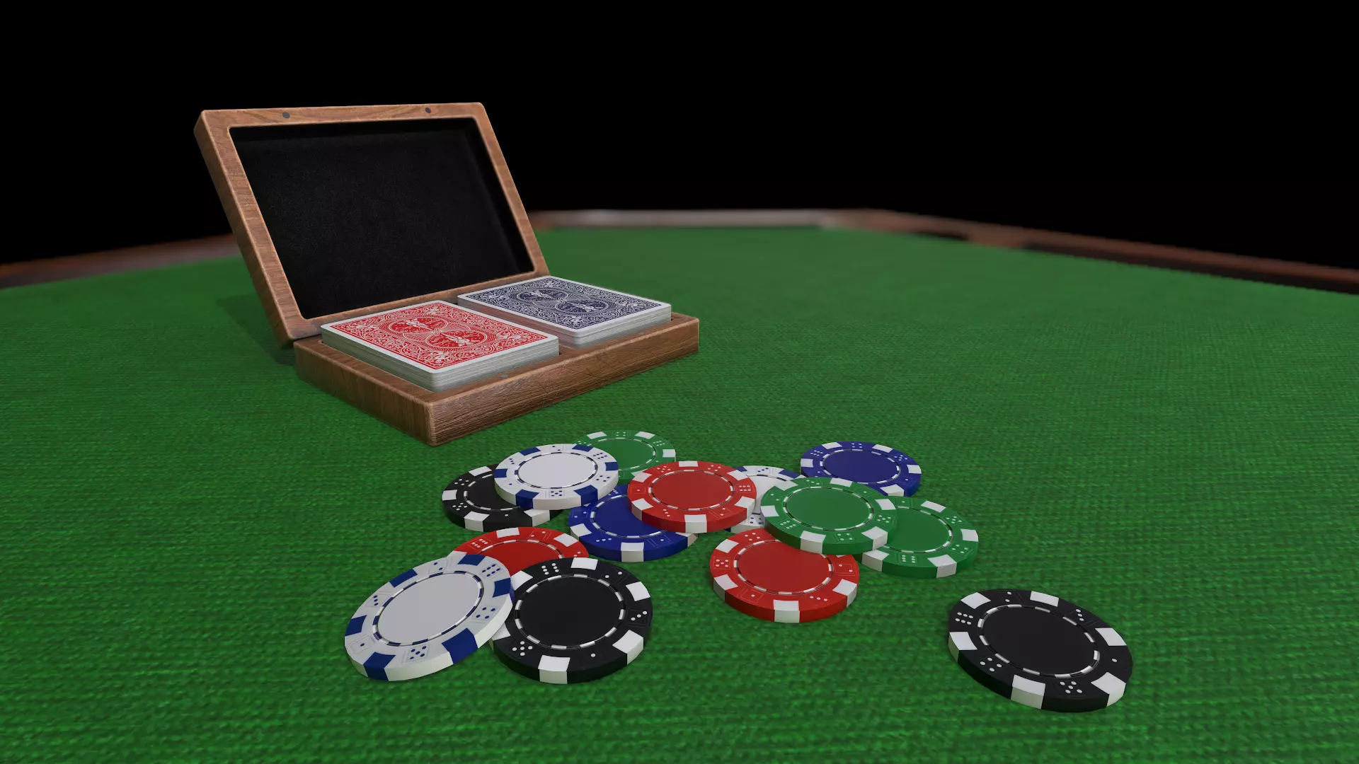 3D model and textures of a Poker/playing cards box and Poker chips (part of my Game Room set)
