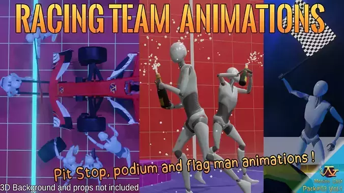 This animation pack contains :-3 animations of Lollipop man-3 animations of mechanic with the front jack-1 mechanic animation with the rear jack -3 animations of Gunman (screwing and unscrewing tire) with the nomenclature of the 80s, 90s and 2010-4 animations of mechanic removing the tire-3 animations of mechanic inserting the new tire-3 animations of flag at the start-3 animations of checkered flag-5 long animations of podium-2 animations of trophy handover -3 bonus animations of humorous fail