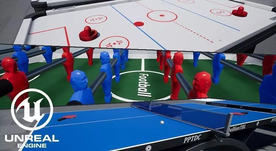 A pack that contains High Quality Air Hockey, Football & Ping Pong Assets that could be used in a Sports game in First or Third person, in VR Games, or simply as a background props.