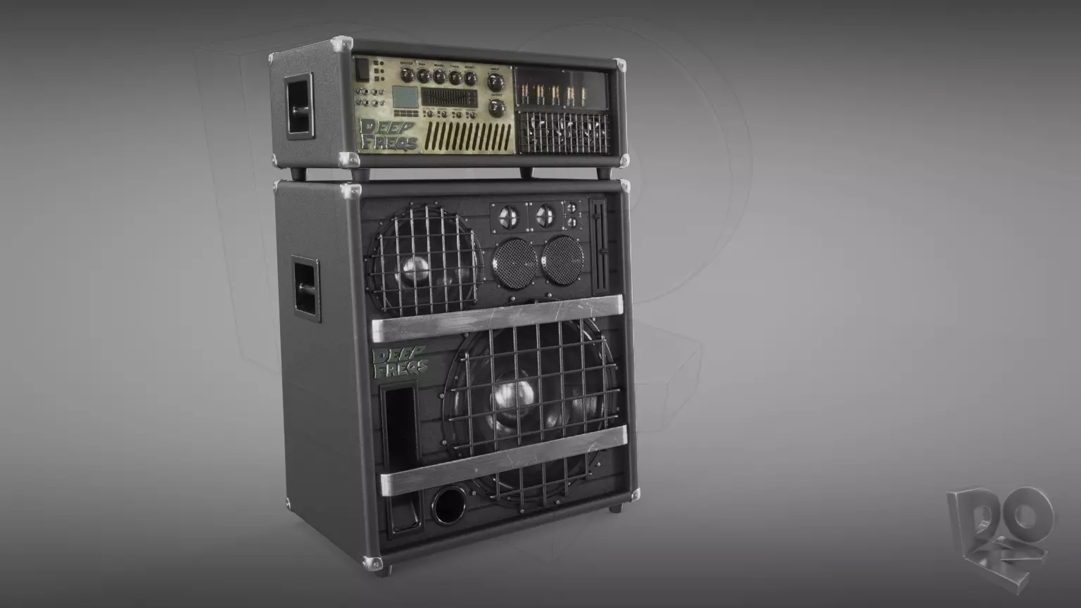 Detailed, subdivision-surface-ready, 3d model of a non-existent, personally invented bass/guitar amplifier.