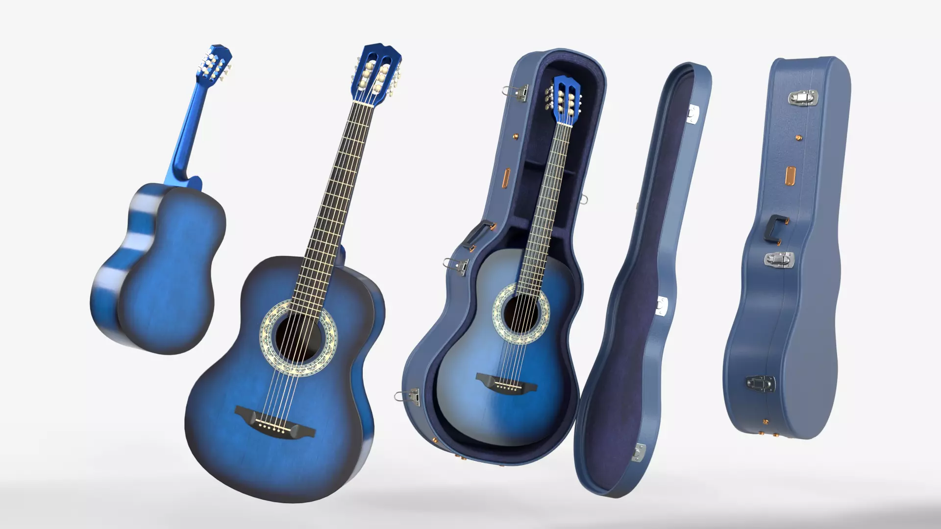 • Blue Classic guitar with Case FBX in format, including textures.