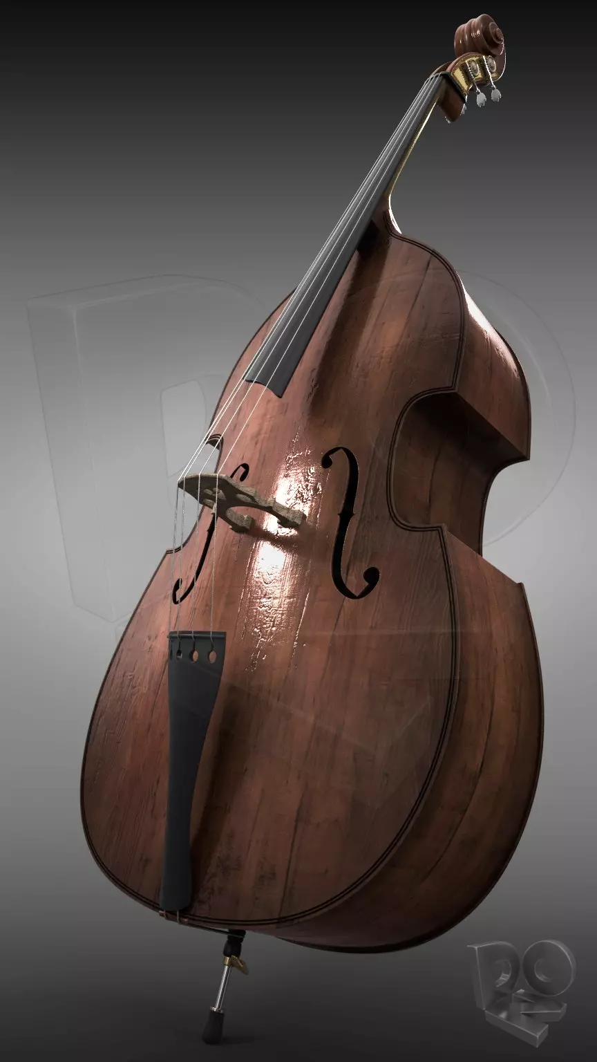 Detailed, optimized, subdivision-surface-ready 3d model of a classic double bass string instrument.