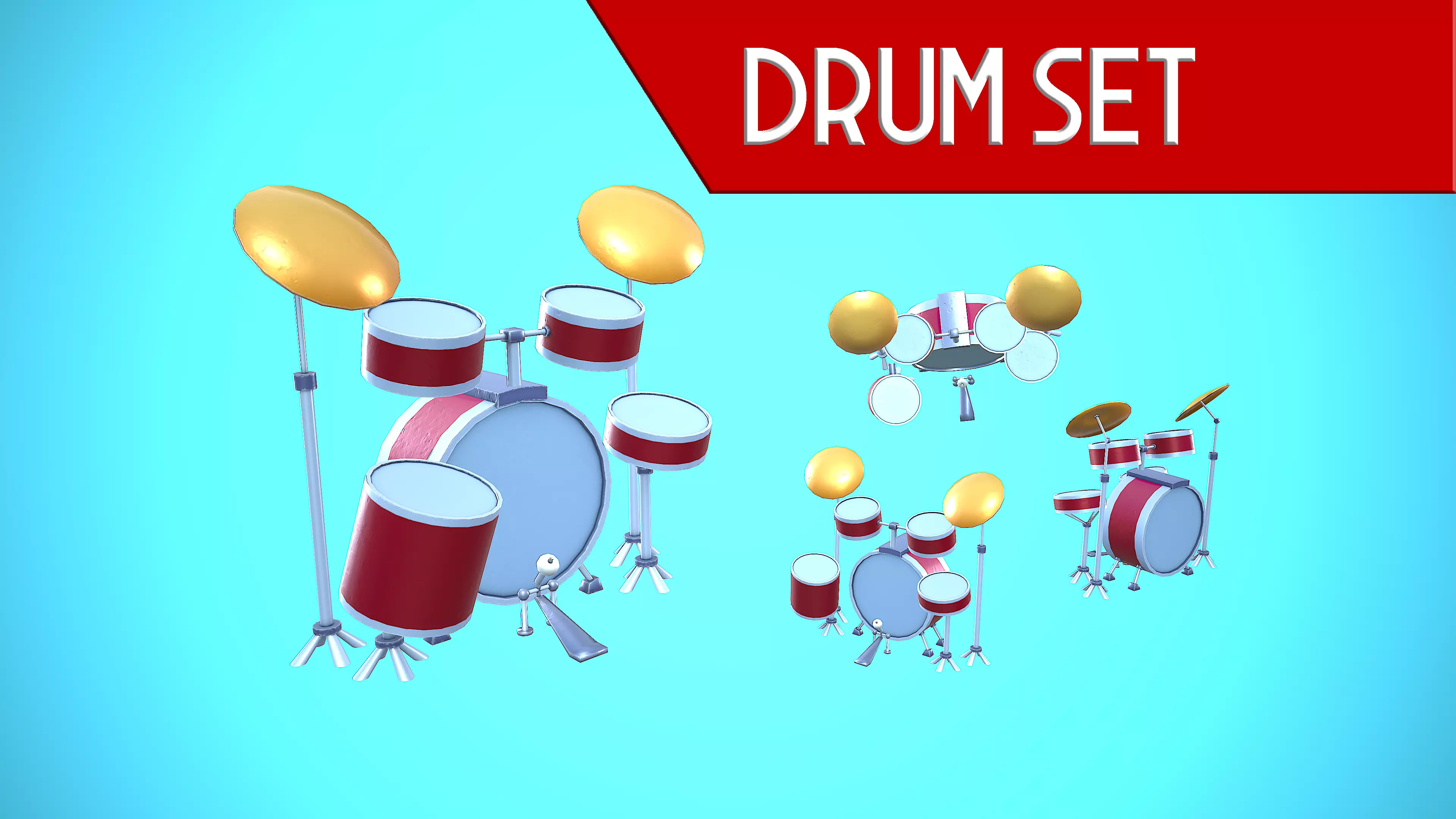 DRUM SET CARTOON STYLIZED REALISTIC Low-poly 3D model