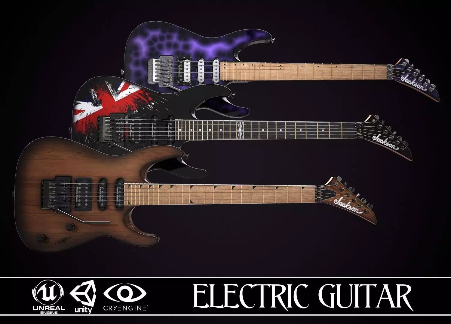 Electric Guitar Jackson Dinky 3 skins Low-poly 3D model