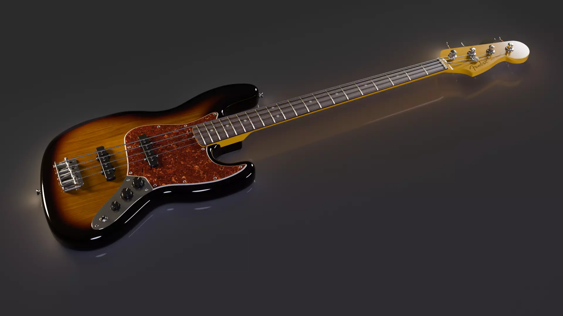 A realistic high-poly model of the famous 1960-s Fender Jazz Bass.The main file is set up with 3-color Sunburst body, Rosewood neck, and Torquoise pickguard.The textures archive includes other options: