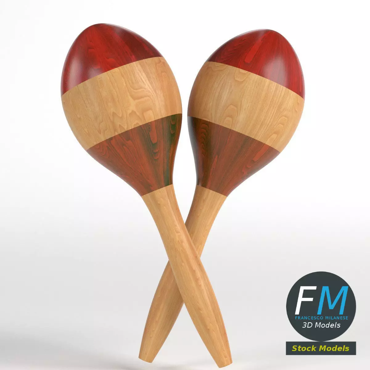 A pair of maracas, rumba shakers 3D Models; 2 objects sharing the same non overlapping UV Layout map, Material and PBR Textures set. Production-ready 3D Model, with PBR materials, textures, and non overlapping UV Layout map provided in the package.