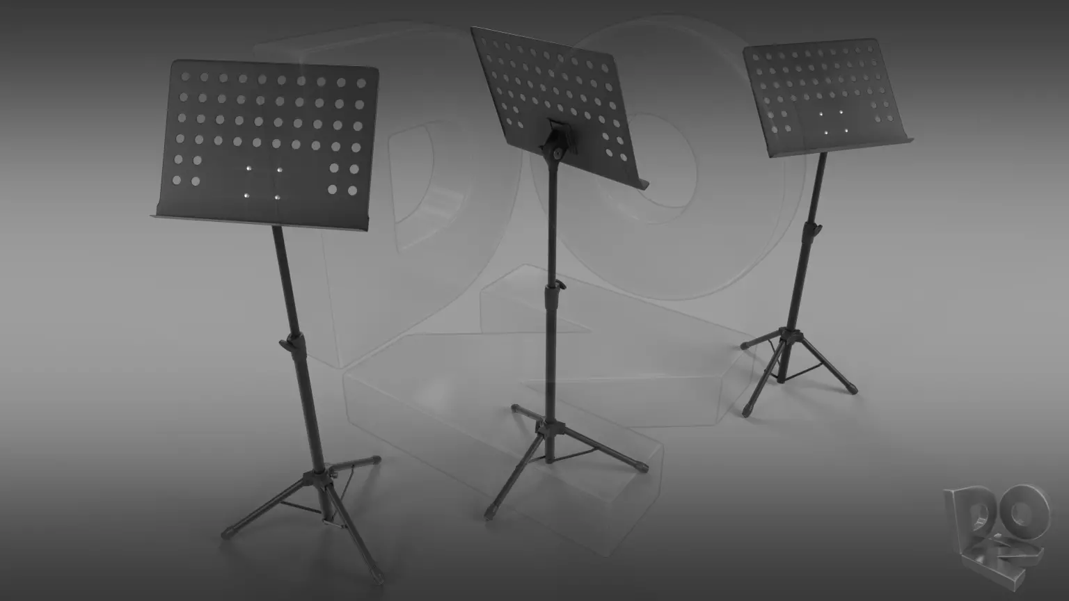 Detailed, subdivision-surface-ready, rigged 3d model of a common music stand.Three baked poses offered.