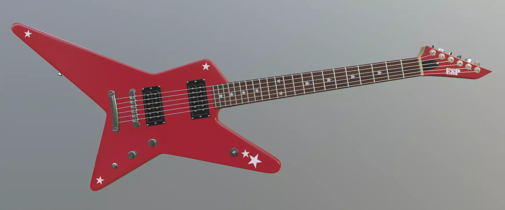 Detailed mid-poly subdiv-ready model of electric guitar from media franchise Bang Dream.Textures packed in 2 4k atlases, include AO, color, roughness, metallic, normal.