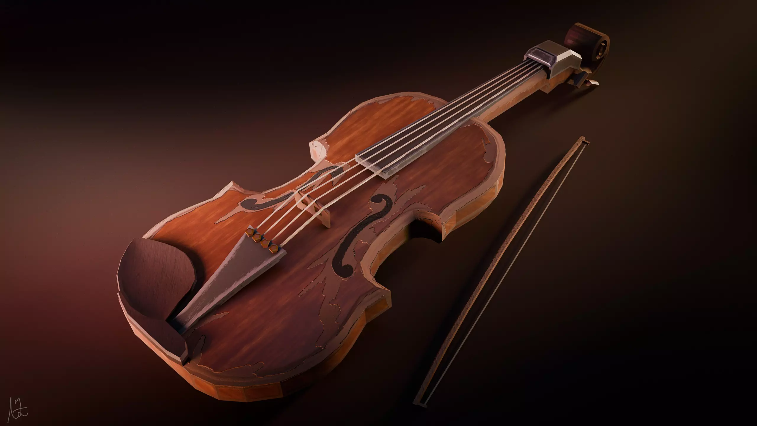 Stylized Violin 3D model Low-poly 3D model