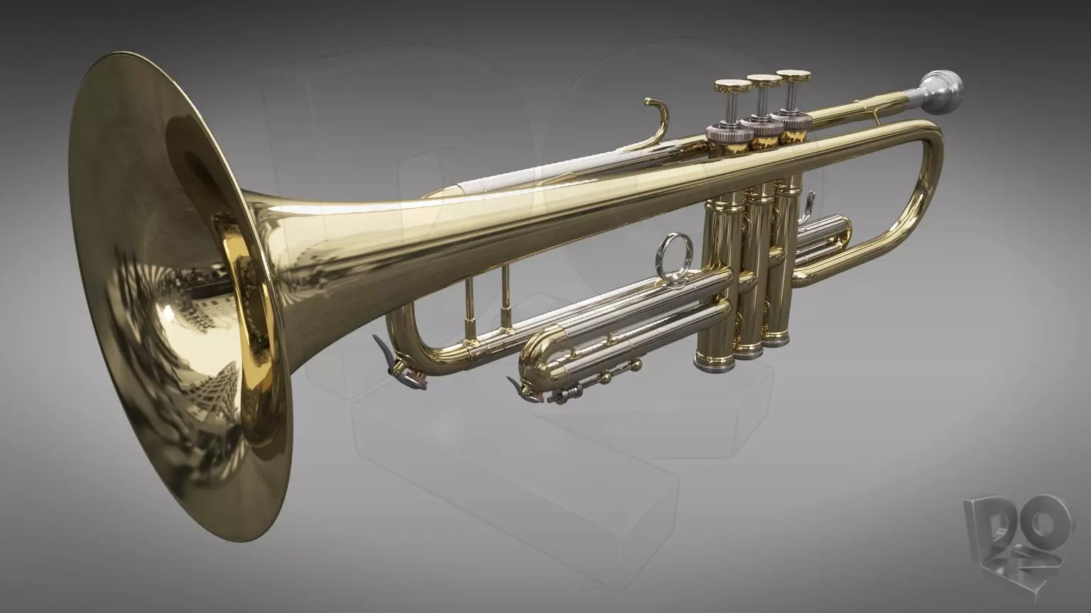 Perfect, detailed, optimized, subdivision-surface-ready 3d model of a classic B flat trumpet.