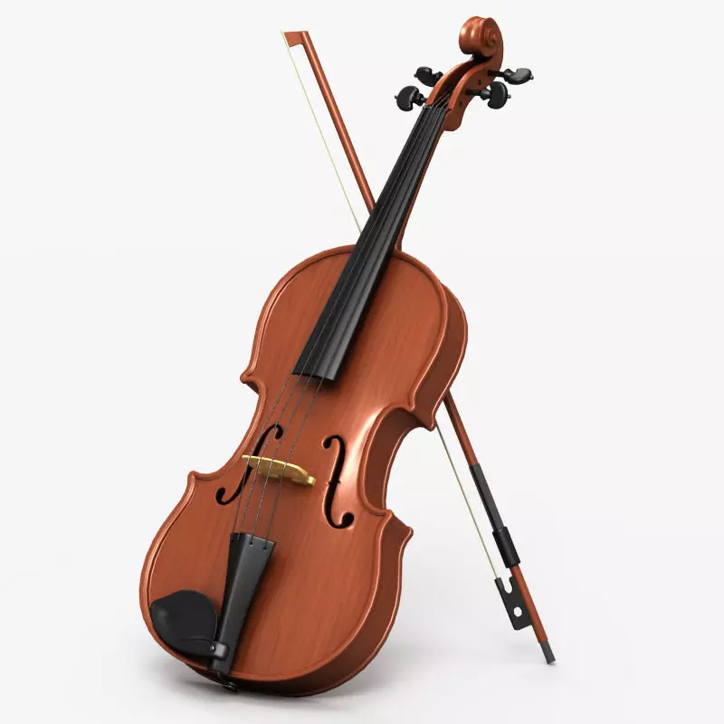 An optimized poly-count 3d violin with smooth modifier active. There are 5 V-ray materials with 2 diffuse maps. Both are 1024x1024px.