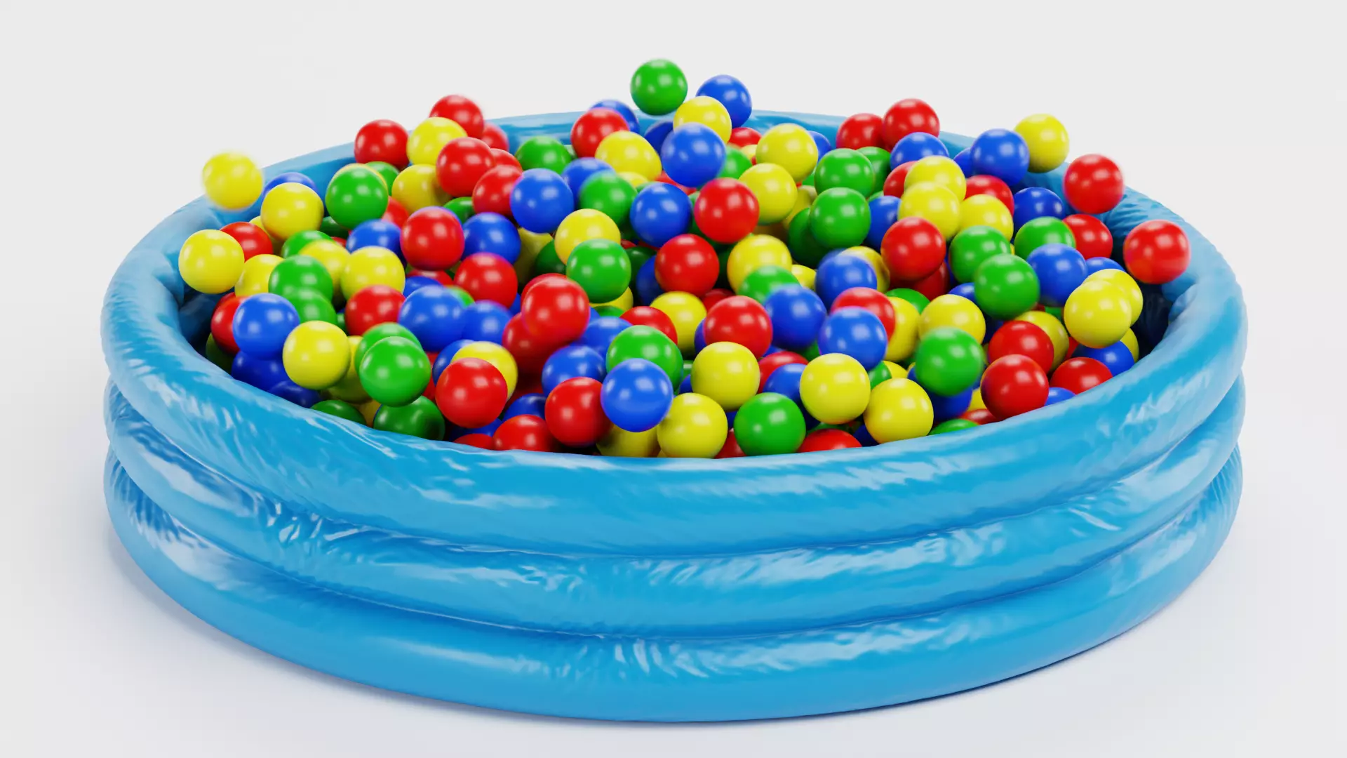 This 3D ball pit model provides a ready-to-run rigid body simulation setup in Blender. It features an inflatable-style pool filled with colorful spheres, allowing to explore collision physics, gravity behavior, and motion dynamics without manual configuration. The asset is fully low-poly and optimized, suitable for simulation tests, physics demos, or animation exercises.