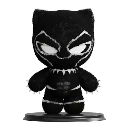 Realistic 3D model of a soft wool toy in the form of a black panther. It is ideal for use in projects related to children's games, interiors, animation or visualization of products. The model is made with high detail, including the texture of wool, realistic folds and soft body shapes.