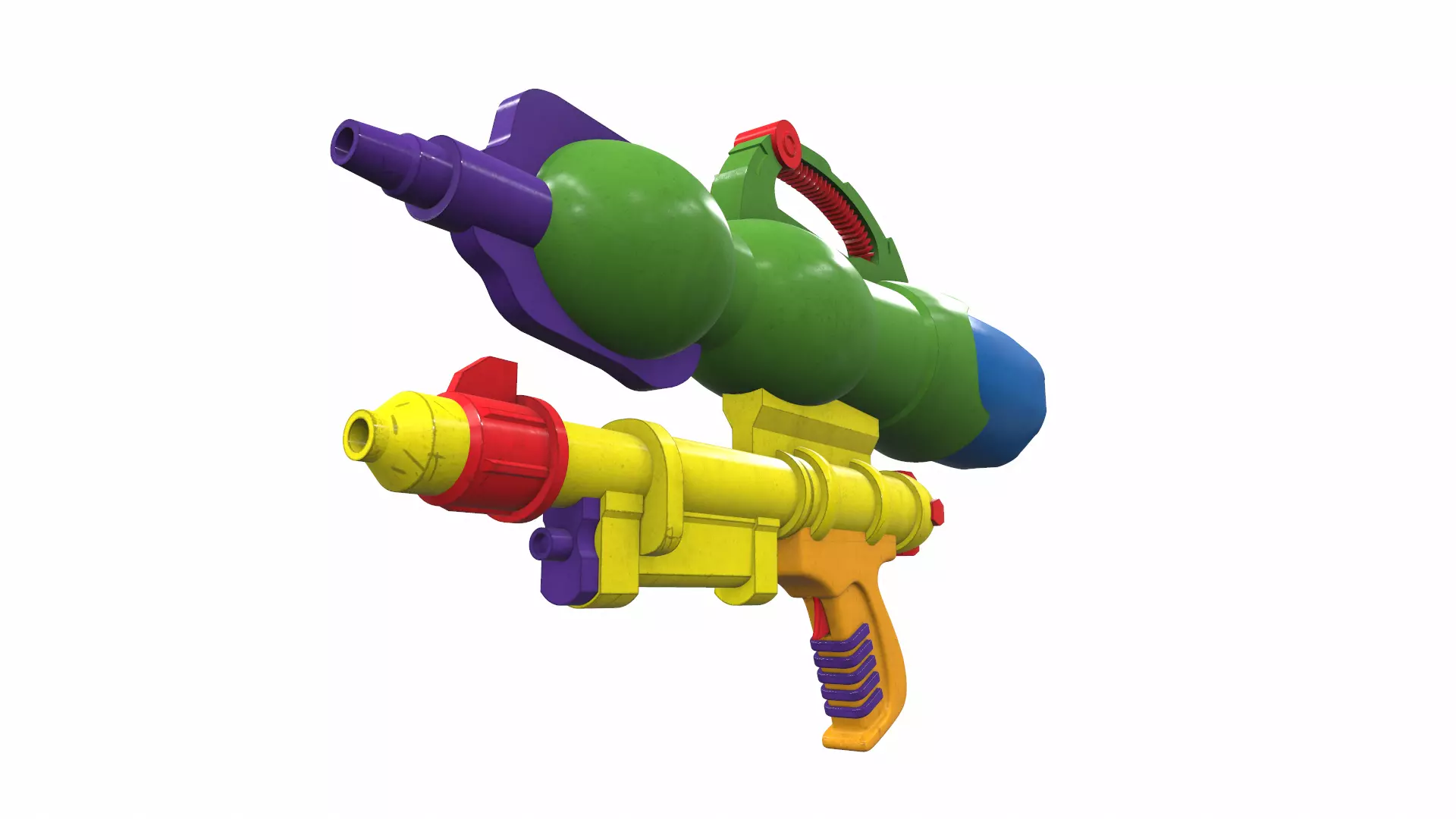 The model toy water gun is located in zero coordinates. UVW mapping created, all textures are in the zip archiveThe model water toy gun was created in 3Ds Max and textured in 3D coat. Previews of the model toy water gun are made in the Marmoset Toolbag program.