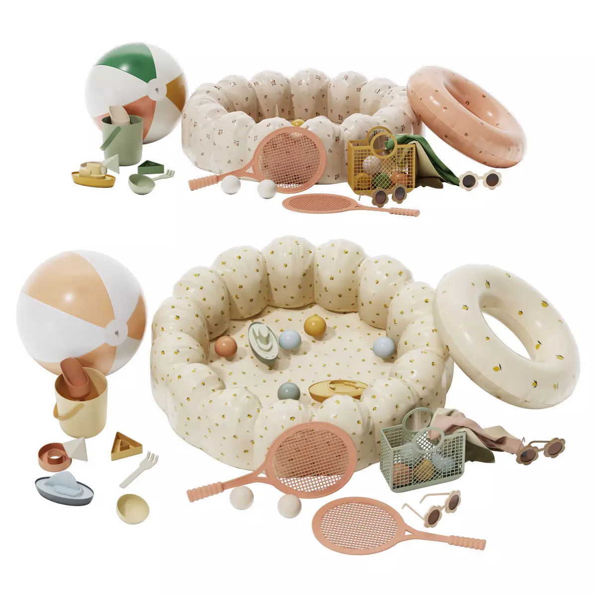 toys, decor, kid, nursery, fabric, ring, kidsroom, kids, tennis, racket, boat, ball, baby, sand, beach, outdoor, playground, pool, towel, sunglasses, plastic, swimming, summer, children, child, inflatable, circle, rubber, sea, lake, basket, sandtoy, lemon, peach, cherry, mustard, orange, green, blue, cream, beige, purple