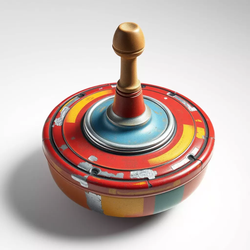 This is a meticulously crafted 3D model of a stylized spinning top, featuring a distinct retro-futuristic or sci-fi aesthetic with a heavily distressed, weathered finish. The model showcases vibrant, chipped paint over a metallic base, accented by a contrasting wooden handle, giving it a unique character. It's perfectly suited for a wide range of digital applications, including integration into video games as an environmental prop, a collectible item, or an interactive element within an AR/VR experience. Its detailed textures make it ideal for high-quality renders in architectural visualization scenes that require a touch of whimsy or historical context, as well as for captivating digital art compositions. The model is built with clean topology and is fully UV unwrapped, ensuring efficient texture mapping and easy integration into any project pipeline. PBR (Physically Based Rendering) textures are included, accurately simulating the chipped paint, metallic sheen, and underlying wear, which provides realistic lighting interaction and visual fidelity across various render engines. It is optimized for both real-time applications, offering excellent performance in game engines and interactive experiences, and for static renderings where visual fidelity is paramount. Supported file formats typically include GLB, OBJ, FBX, USD, and DAE, providing broad compatibility for various 3D software and platforms. This versatile asset is ready to be dropped into your scene, adding charm and a touch of nostalgic sci-fi appeal to your digital worlds.