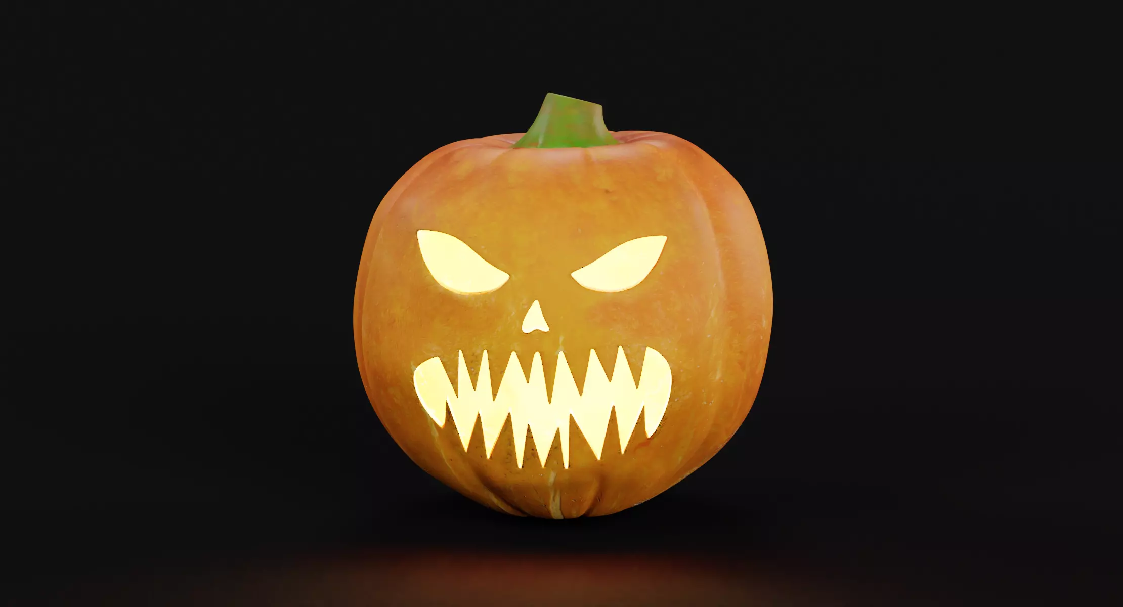 A carved Halloween pumpkin 3D model featuring a classic spooky expression with jagged teeth and triangular eyes. The interior is hollow, allowing for an illuminated effect in renders. Ideal for Halloween decorations, festive scenes, autumn setups, or close-up renderings with dramatic lighting.