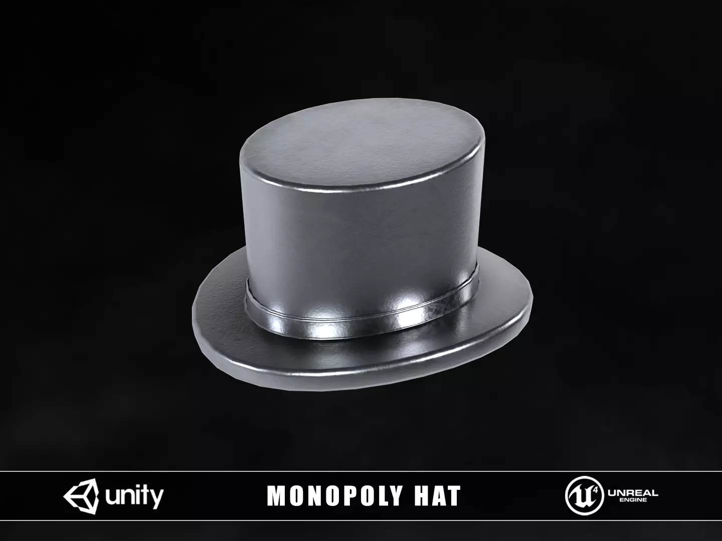 Monopoly Hat 3D model. This model comes with the Monopoly Piece and 1 texture set. Modeled in Maya and textured with Substance Painter and Photoshop. The model is built to scale and is UV unwrapped with 4k textures. Includes 3D model and textures!