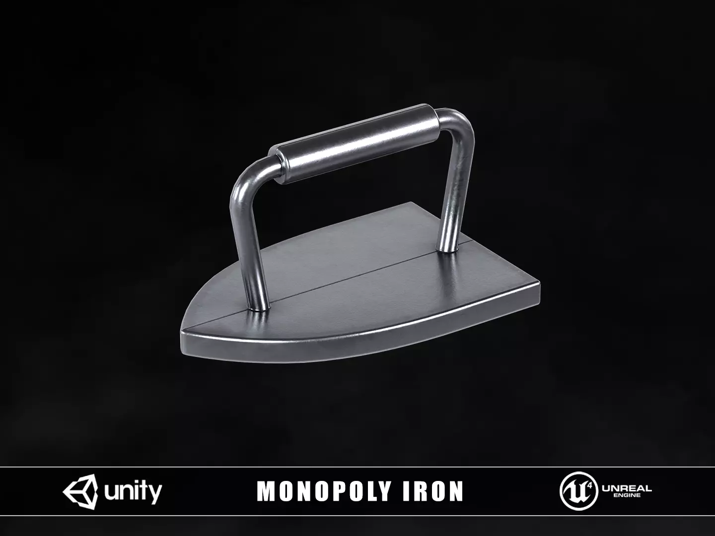 Monopoly Iron 3D model. This model comes with the Monopoly Piece and 1 texture set. Modeled in Maya and textured with Substance Painter and Photoshop. The model is built to scale and is UV unwrapped with 4k textures. Includes 3D model and textures!