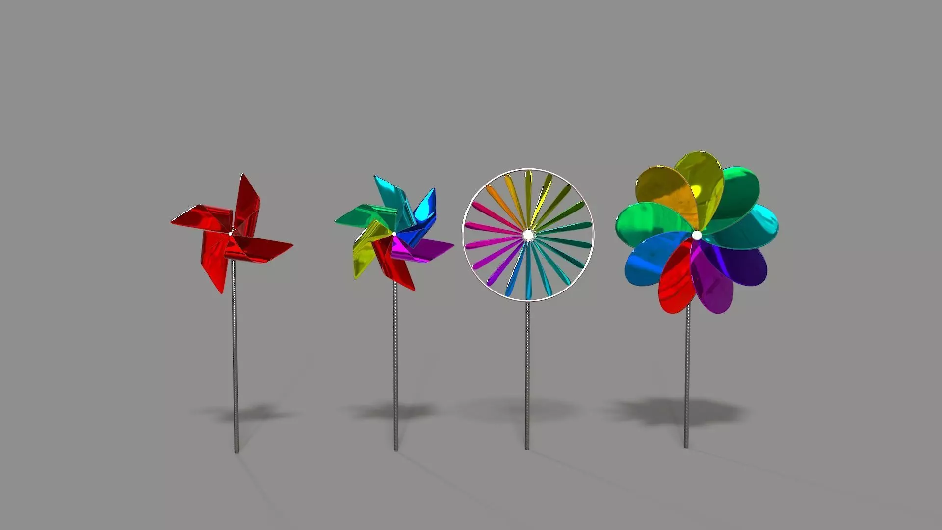 Pinwheel three colorful pinwheels on wooden stick Low-poly 3D model