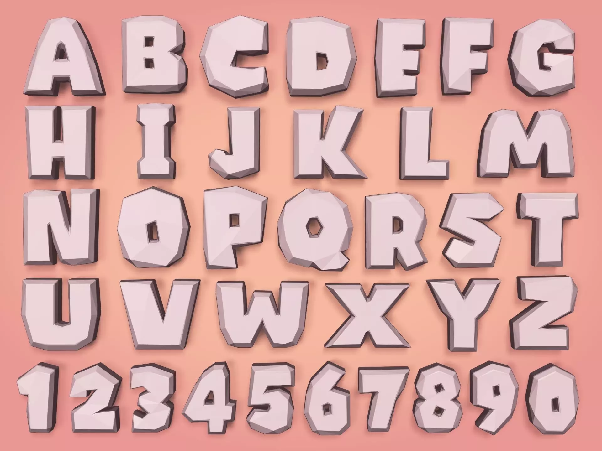 Polygonal LowPoly Cartoon Alphabet Low-poly 3D model