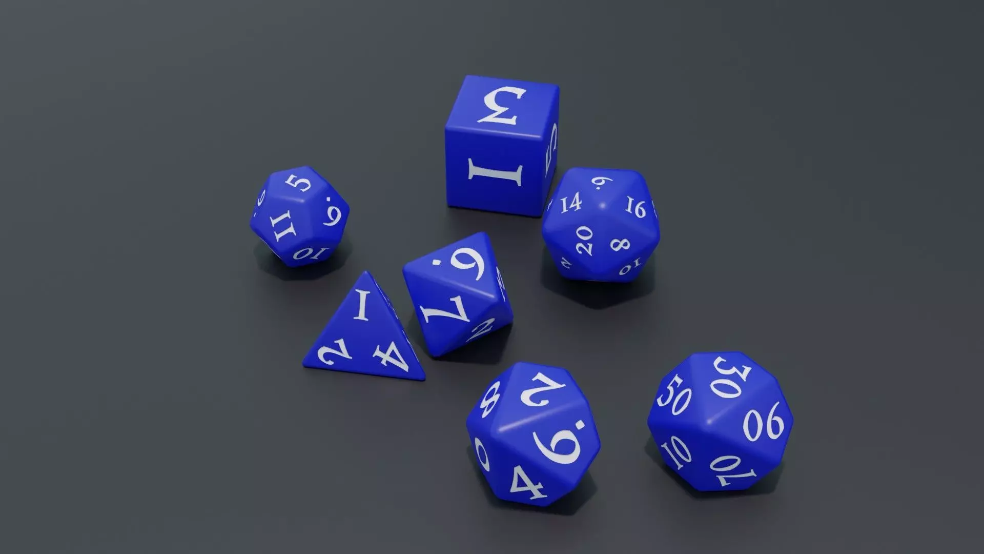 RPG dice asset includes: D4, D6, D8, D10, D12, D20, D100All asset has 3240 tris.Asset include 4k textures (Base color, Height, Metallic, Normal, Roughness)Materials included.All faces triangulate.All dice VR / AR ready.
