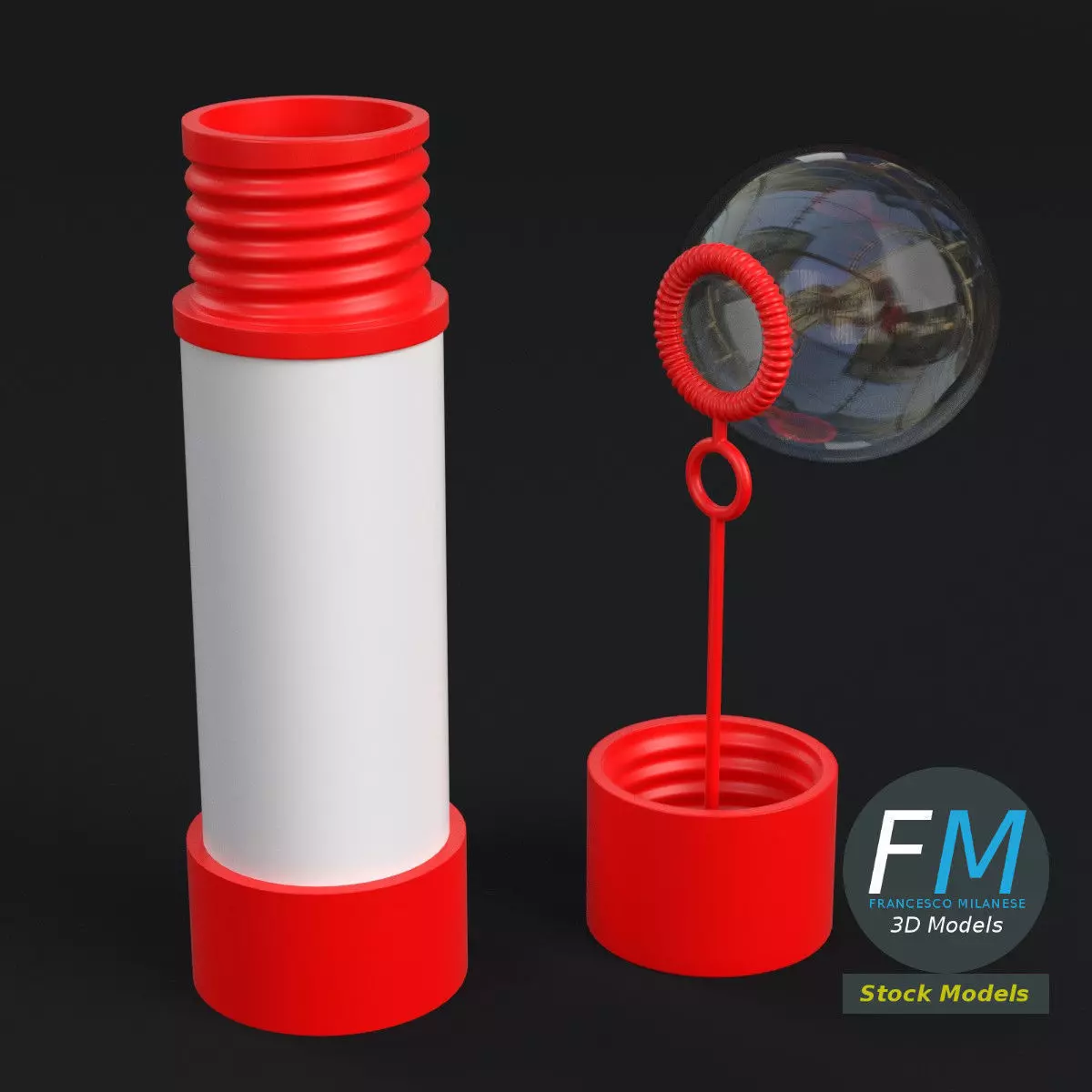Soap bubbles kit 3D Model. 4 objects (container, liquid, top, bubble), parented, each one with its own non overlapping UV Layout map, Material and PBR Textures set. Production-ready 3D Model, with PBR materials, textures, non overlapping UV Layout map provided in the package.Quads only geometries (no tris/ngons), no poles.Easily customizable: UV unwrapped geometries, so you can create new Textures (or modify the existing ones) using the UV Layout maps provided in the package (as png with alpha).Each Object, Material or Texture provided in the package has a unique, meaningful name.Made in Blender 3D 2.79 (Cycles materials) then exported to OBJ and FBX; materials and textures made in Substance Painter, exported for PBR, V-Ray, Unity, Unreal.PROMO IMAGES: the first image has been rendered in Cycles for Blender 3D 2.7x; in particular, you can find 11+ promo images in this description: