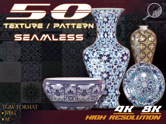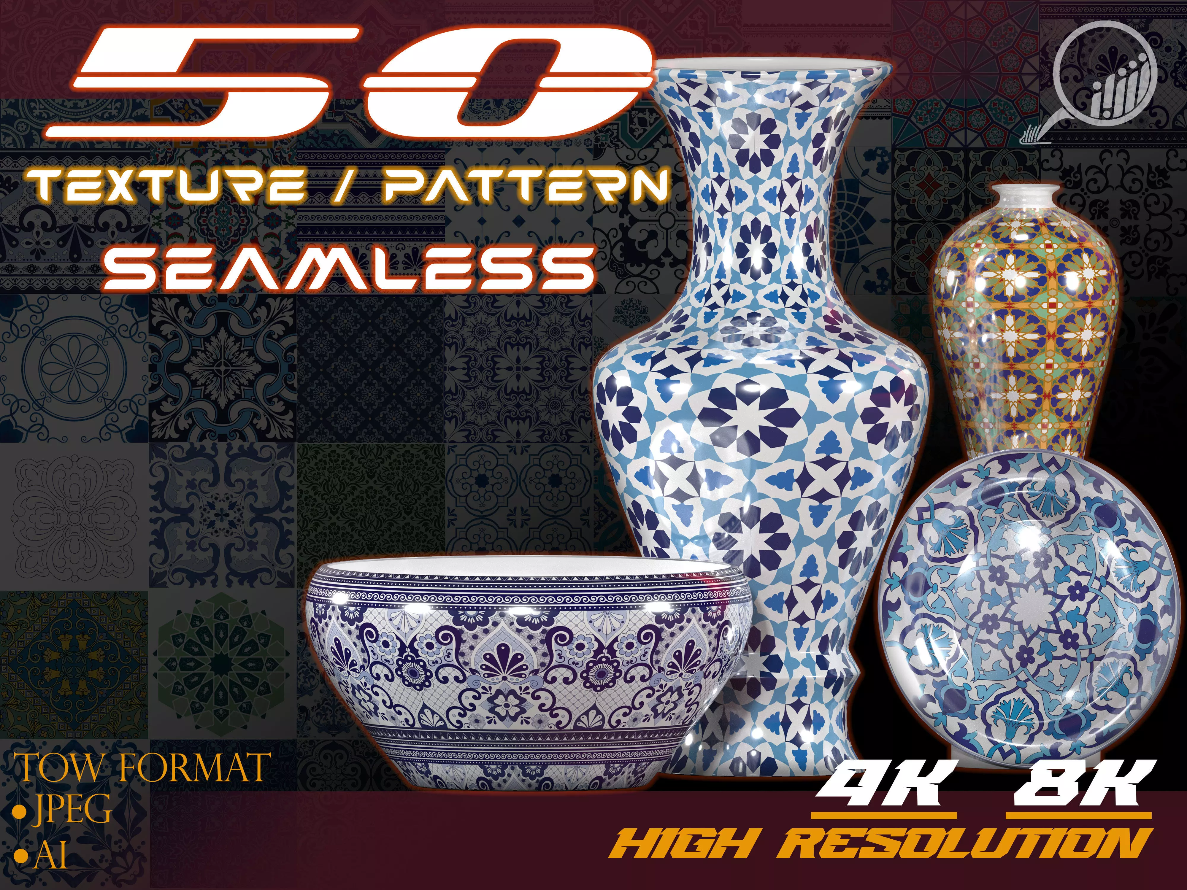 my collected 50 seamless PATTERN & TEXTURE in one pack for you. Here you can find light, simple and complex patterns that you can use in your projects. You can use these maps in different workflows and software as your base or template.After purchasing this set, you will receive:50 seamless patterns and textureswith 4k and 8k resolutionAi & jpge formats 50 PATTERN patterns with adjustable parameters Preview templatesThese textures are designed by illustrator 2021 and you can easily use the textures in your 3D models like the examples shown. These patterns can be implemented on vases and dishes, cushions, curtains and sacks or any other 3D model.These texture of fabrics are also used for the design of the slimi. Since these designs are vector, they can be enlarged to 4k and 8k formats without quality loss.