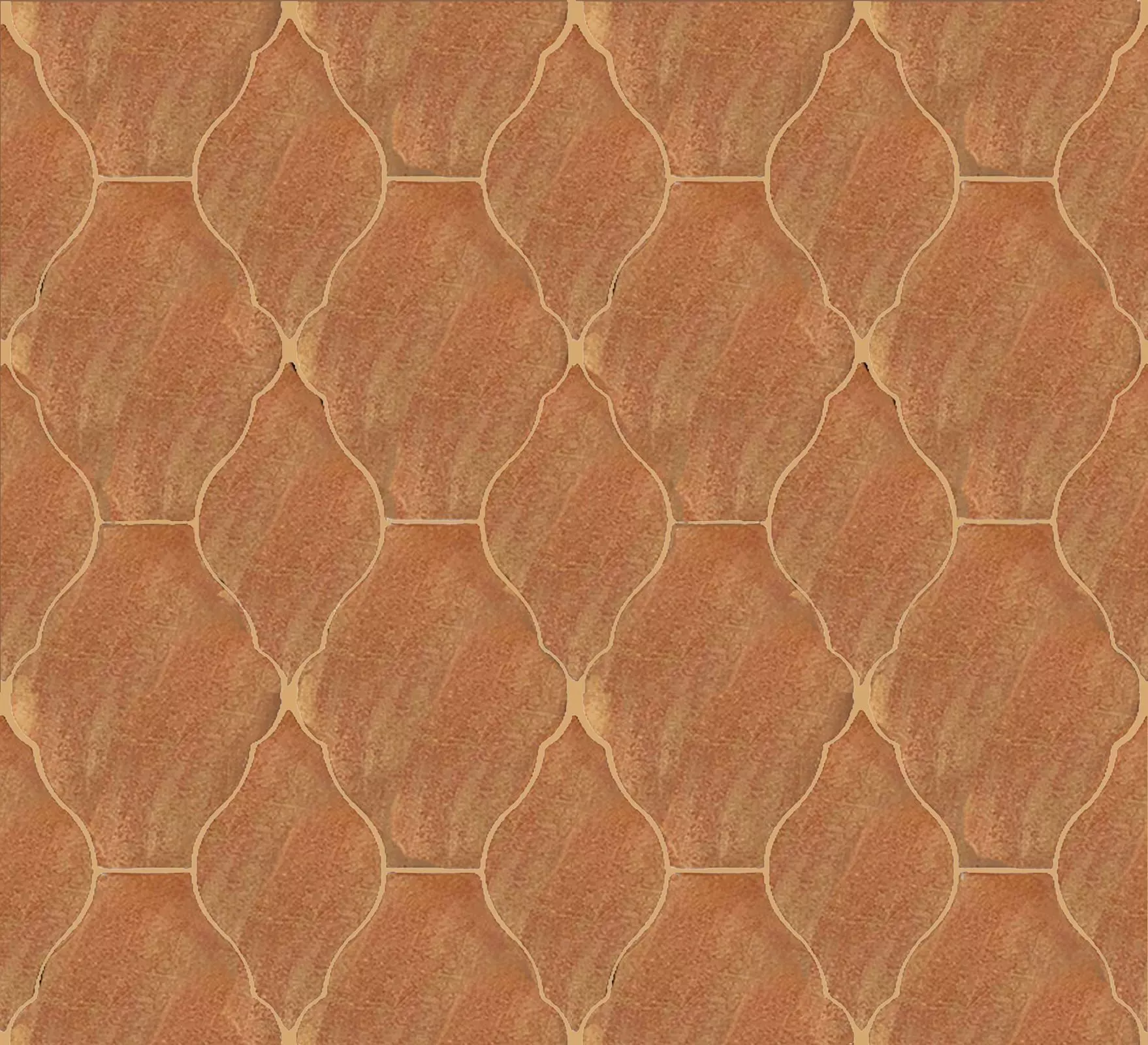 Seamless arabesque or lantern shaped terracotta tile material with warm clay hues and soft tonal banding, plus matching grout for handcrafted charm.