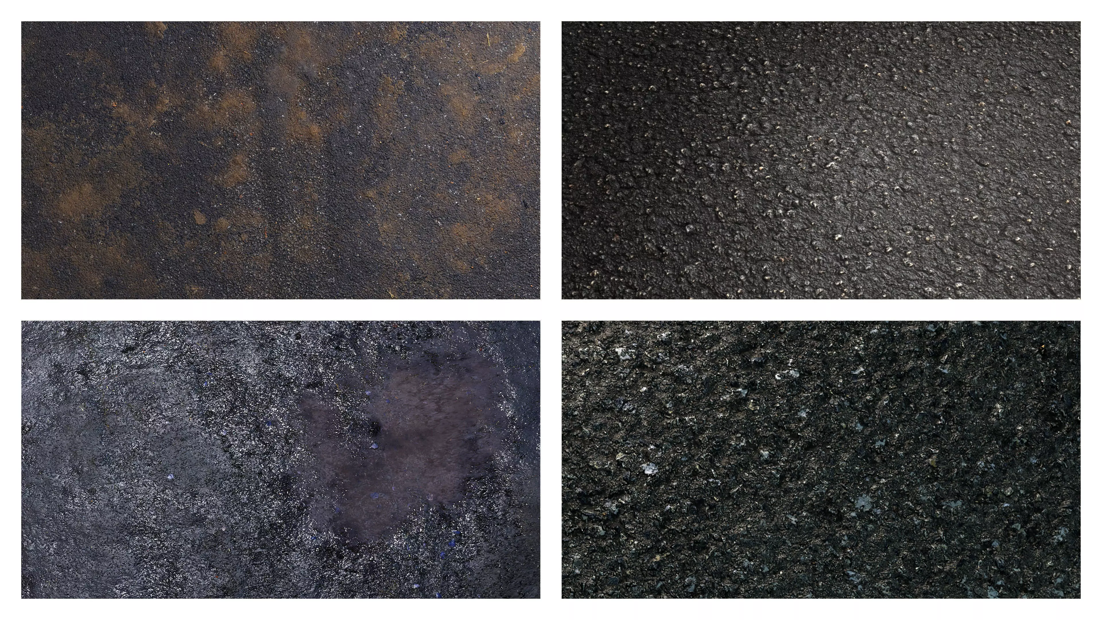 Keywords: asphalt PBR texture set, road asphalt texture, wet asphalt PBR, dirty asphalt texture, seamless asphalt material, tileable road surface, urban pavement textures, game-ready asphalt textures, photorealistic asphalt material