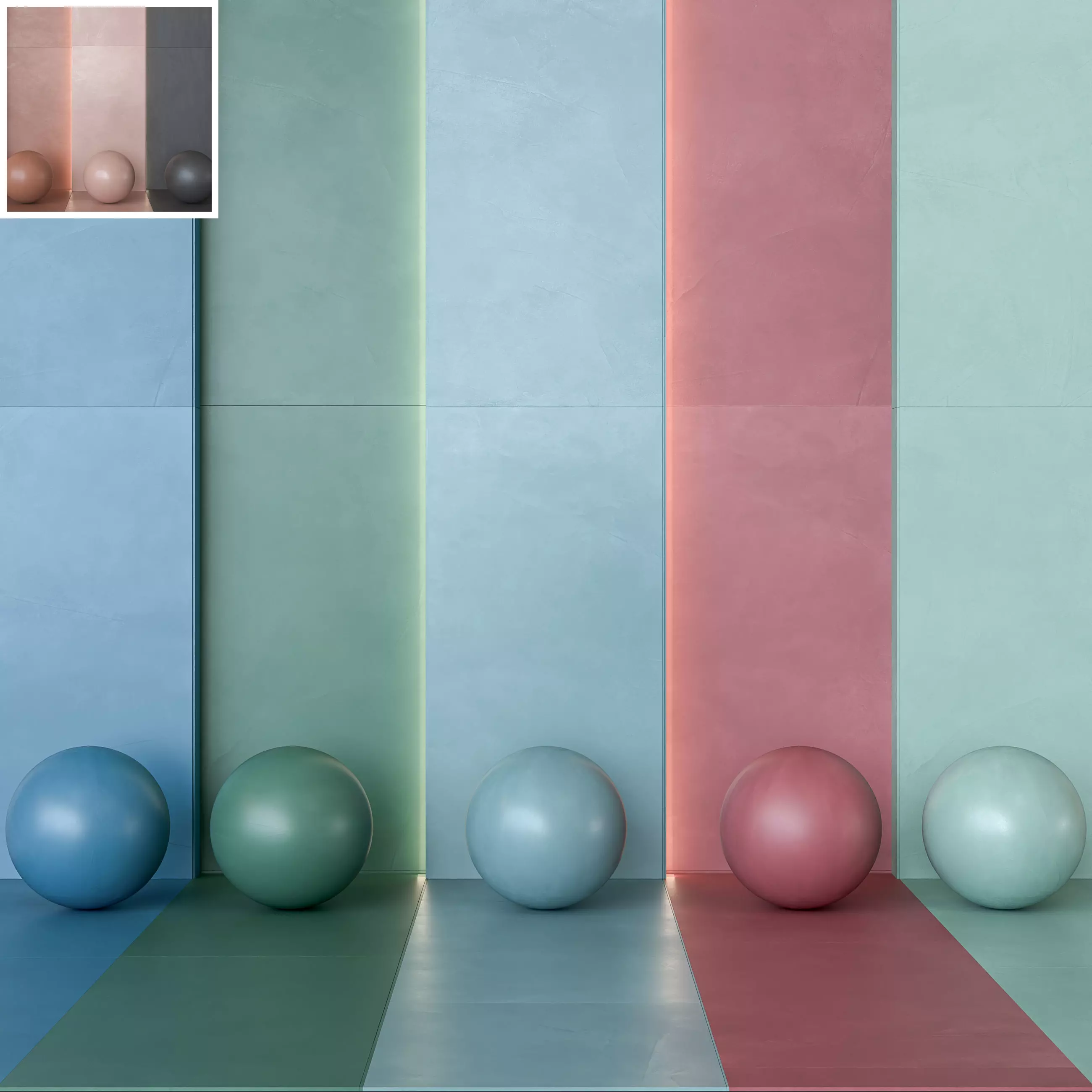Authentic Model: This is a detailed 3D model set representing the real Atlas Concorde Prism series. This collection, featuring a color palette curated by renowned architect Piero Lissoni, realistically captures the look and texture of hand-troweled resin.